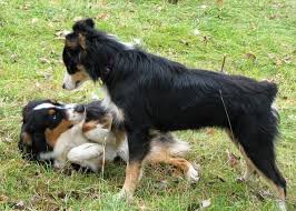 A pesar que los perros juegan en forma bastante brusca, en general están bastante relajados, sus labios cubren sus dientes. Los perros a menudo ladran como parte del juego, normalmente en un tono más agudo que el ladrido del mismo perro debido a miedo o como advertencia.